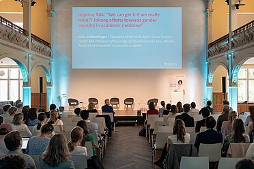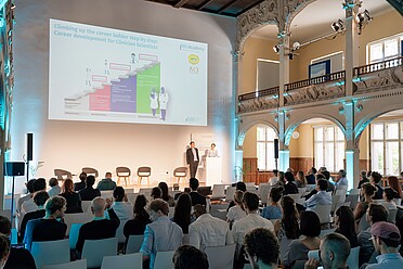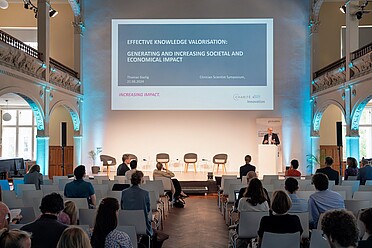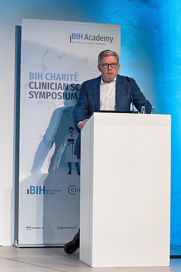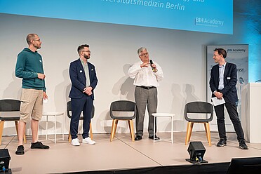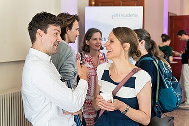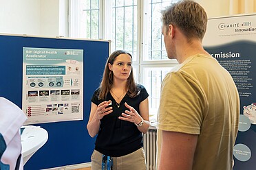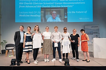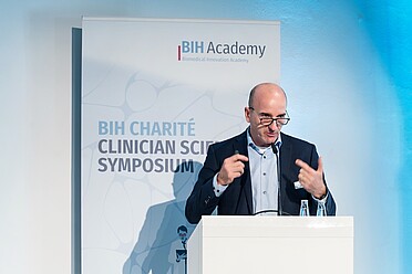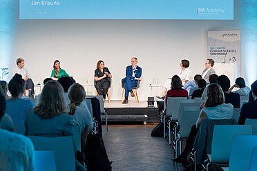 Nach sechs Jahren wurde am 20./21. Juni 2024 wieder ein internationales BIH Charité Clinician Scientist Symposium in Präsenz ausgetragen, zu dem rund 170 Teilnehmende in die „Villa Elisabeth“ (Berlin Mitte) kamen. Ziel des Symposiums war es, den wissenschaftlichen Austausch der Programmteilnehmer*innen untereinander sowie die interdisziplinäre Vernetzung zu fördern und internationale Kooperationen auf- und auszubauen. (Digital) Clinician Scientists hatten die Möglichkeit, international renommierte Mediziner*innen und Wissenschaftler*innen als Referent*innen einzuladen – dies eröffnete ihnen die Möglichkeit, sich mit führenden Persönlichkeiten aus dem eigenen Forschungsfeld über ihr Projekt auszutauschen. Das abwechslungsreiche Programm setzte sich zusammen aus „Tandem-Sessions“ von Fellows und führenden internationalen Expert*innen aus den jeweiligen Forschungsgebieten, Poster-Sessions und Workshops. Zudem wurden in zwei Paneldiskussionen inkl. Impulsvorträgen zwei aktuelle Themen diskutiert: 1. ”We can get it if we really want?! Joining efforts towards gender equality in academic medicine” sowie 2. “Crafting Relevant Research Goals – A Panel Discussion on Patient Engagement and Other Strategies to Ensure That Our Research Really Matters”. Als Grußwortredner fungierten Prof. Dr. Ulrich Kintscher, Prodekan für Forschung mit klinischem Schwerpunkt der Charité Universitätsmedizin – Berlin, sowie Prof. Dr. Christopher Baum, Vorsitzender des BIH Direktoriums und Vorstand des Translationsforschungsbereiches der Charité – Universitätsmedizin Berlin.