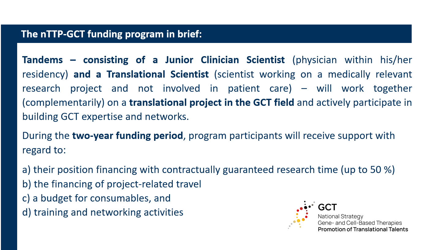 On March 26, 2026, the official launch of the second cohort of the national Translational Tandem Program for Gene- and Cell-based Therapies (nTTP-GCT) took place in Berlin. The Kick-Off and Networking Event of the personnel funding program brought together both the new fellows (12 early-career researchers from Tübingen, Heidelberg, Greifswald, Hanover, and Berlin who began their two-year funding in March) and fellows of the pilot cohort (who started in spring 2025).