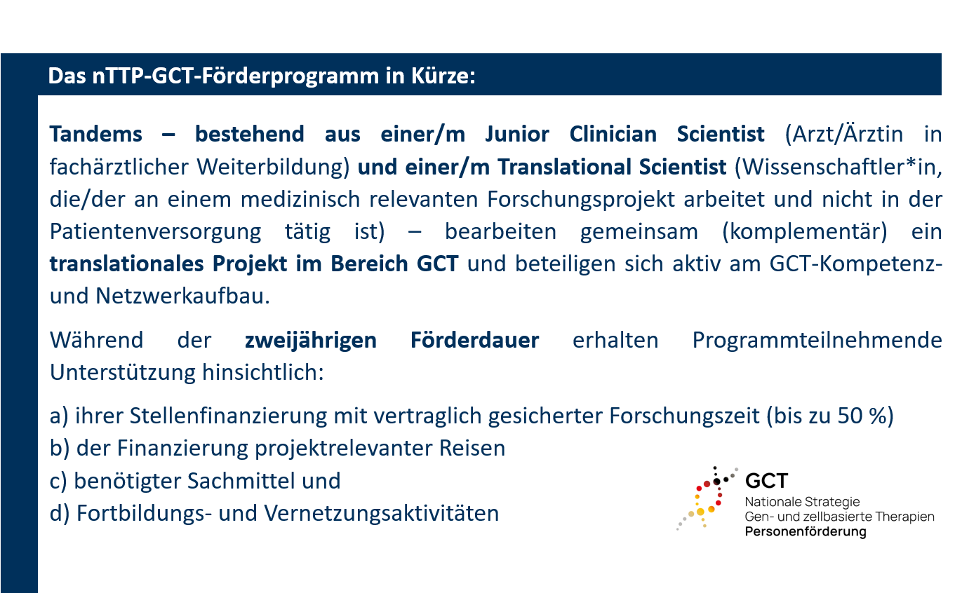 Am 26. März 2026 fiel in Berlin der offizielle Startschuss für den zweiten Jahrgang des nationalen Translationalen Tandem-Programms für gen- und zellbasierte Therapien (nTTP-GCT). Zum Kick-Off- und Networking-Event des Personenförderprogramms kamen sowohl die neuen Fellows (12 Nachwuchswissenschaftler*innen aus Tübingen, Heidelberg, Greifswald, Hannover und Berlin, die im März ihre zweijährige Förderung aufgenommen haben), als auch Fellows der Pilotkohorte (im Frühjahr 2025 gestartet) zusammen.