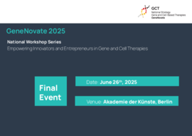Das GeneNovate-Programm, welches vom Netzwerkbüro GCT Germany koordiniert wird, ist ein Impulsgeber für eine neue Gründungskultur in der medizinischen Spitzenforschung. Seit dem erfolgreichen Start 2024 verfolgt das Programm ein klares Ziel: unternehmerisches Denken und Technologietransfer im Bereich der Gen- und Zelltherapien zu fördern. Im Fokus stehen junge Wissenschaftler*innen und Mediziner*innen, die das Know-how erhalten, um ihre Forschung in marktfähige Produkte zu übersetzen.