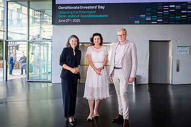 Gen- und zellbasierte Therapien (GCT) zählen zu den bedeutendsten Zukunftsthemen der biomedizinischen Forschung und der klinischen Versorgung von Patient*innen. Die Entwicklung dieser innovativen Therapien, basierend auf exzellenter Forschung, treibt Wissenschaftler*innen aus der Akademie und die Industrie gleichermaßen an. Beim GeneNovate Investors' Day am 27. Juni 2025 haben wir aufstrebende Startups mit Investor*innen, Industrievertreter*innen, Wissenschaftler*innen sowie Expert*innen aus Politik und Regulatorik zusammengebracht. Gemeinsam haben wir einen wertvollen Beitrag zur Zukunft der Medizin geleistet.
